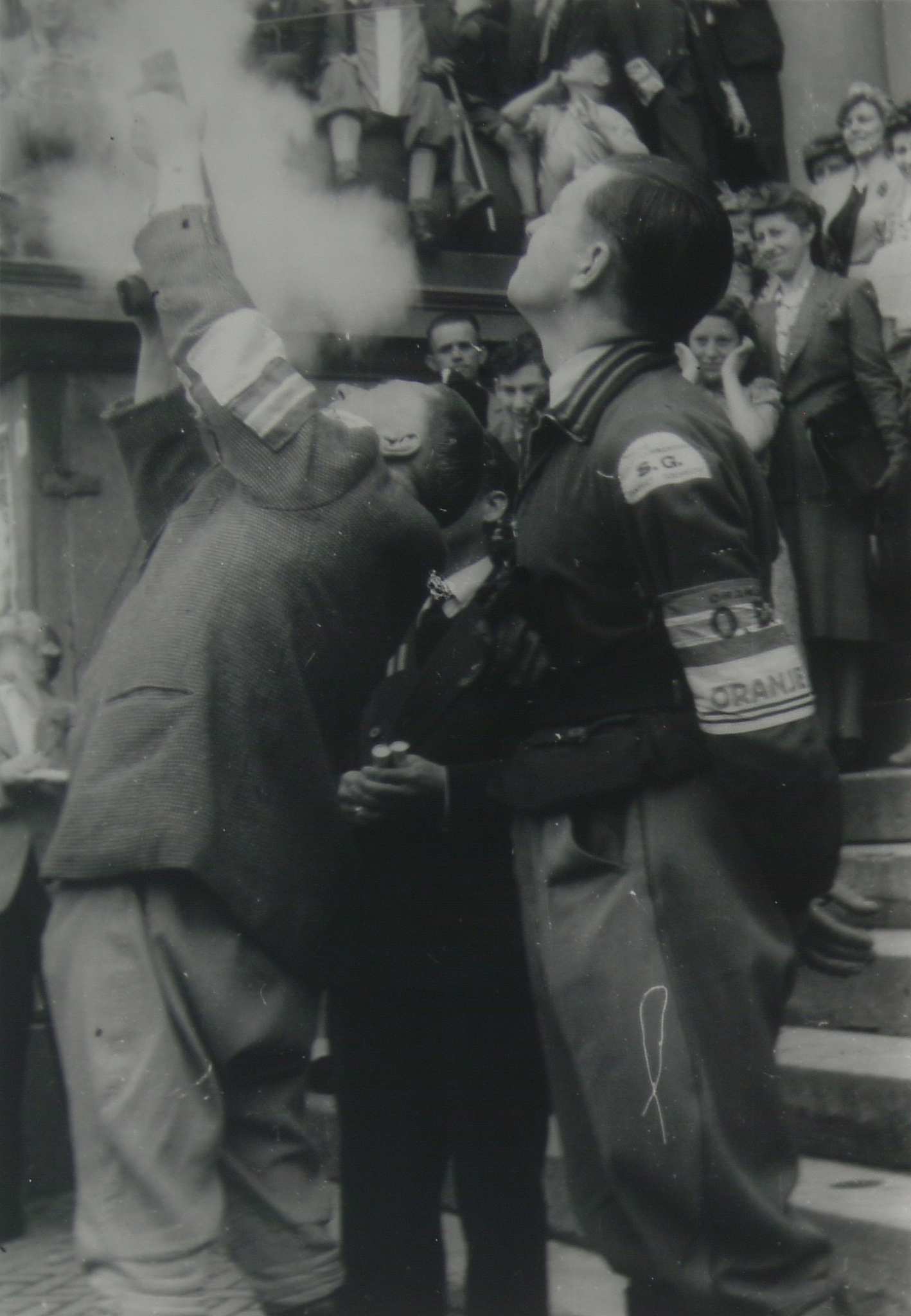 Parade van de Binnenlandse Strijdkrachten bij het stadhuis.