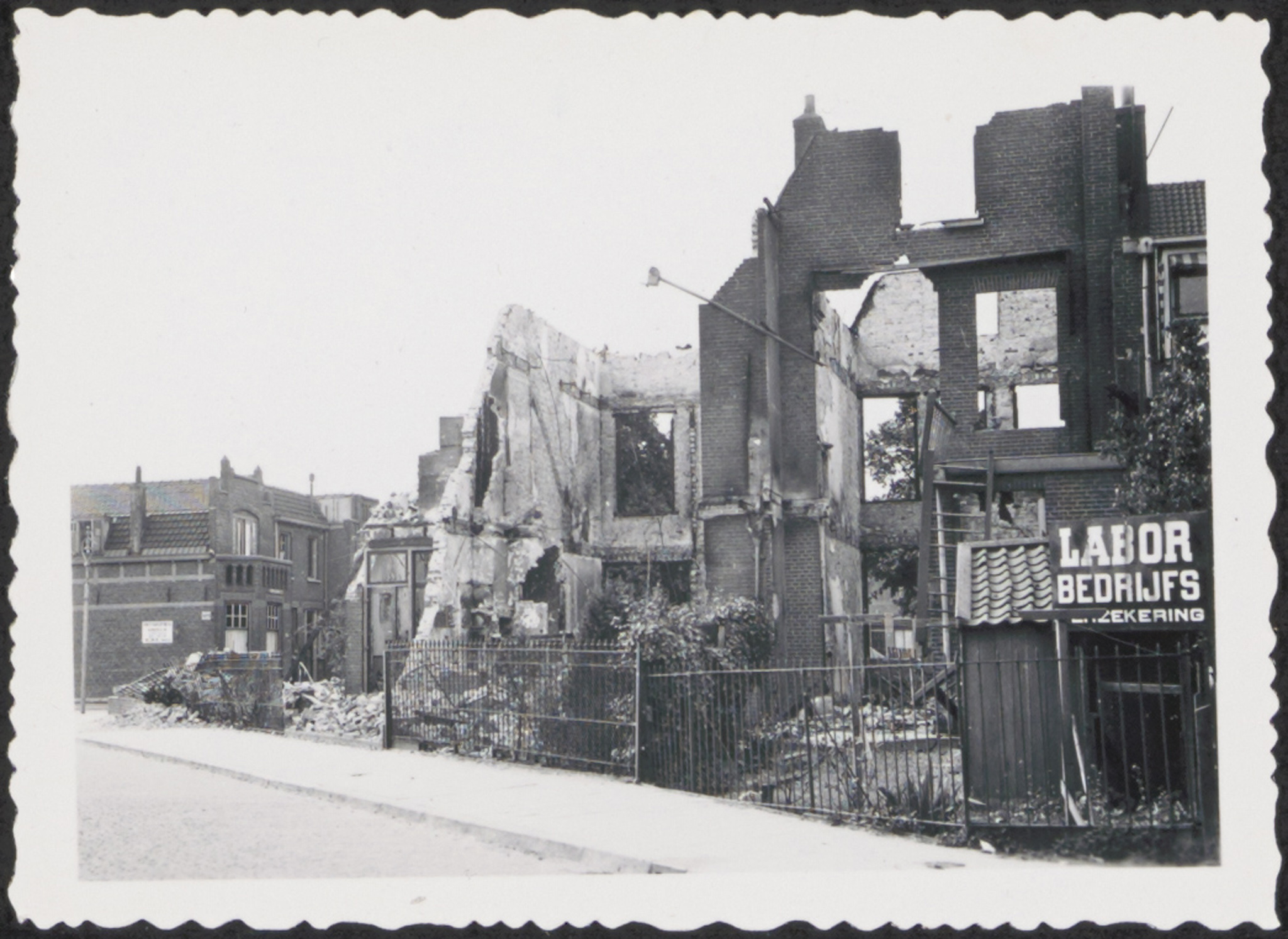 Vernielde panden op de hoek Christiaan de Wetstraat / Transvaalstraat in de meidagen van 1940.
