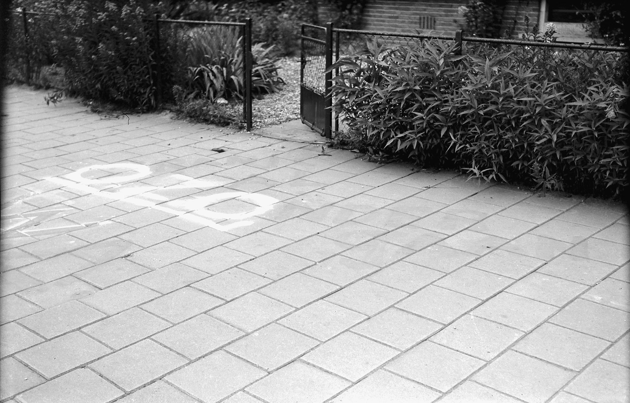 Op het trottoir van Reeweg Oost bij de hoek van de Ceramstraat staat OZO gekalkt, een afkorting van ...