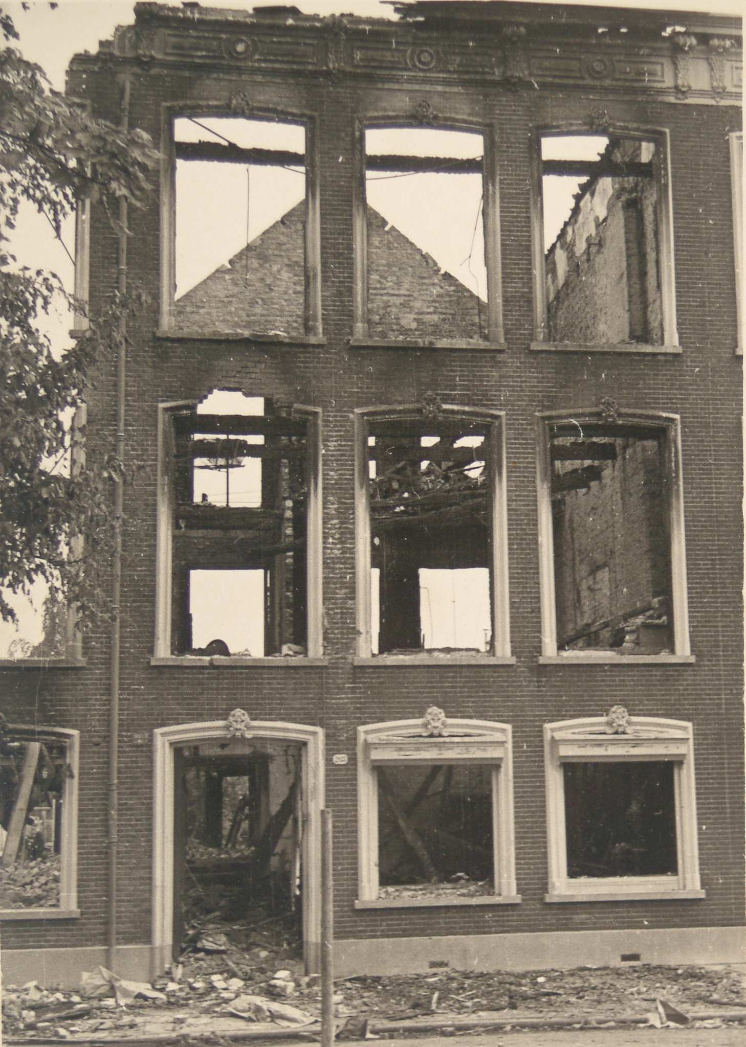Oorlogsschade aan huizen aan de Albert Cuypsingel