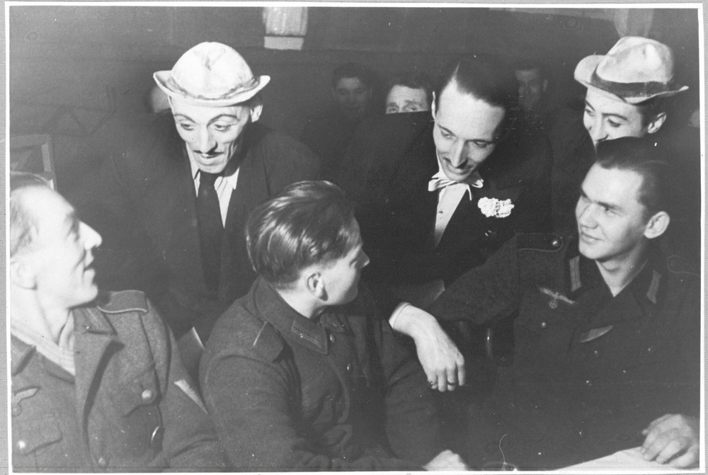 Stal variété De Martini's Album met foto’s van diverse optredens in een varkensstal van Duits georiënteerde artiesten voor Duitse militairen aan het eind van de oorlog, vermoedelijk begin 1945. Het betrof verschillende groepen artiesten, muziek, dans, een clown. Een deel van de foto’s toont vrouwelijke artiesten in het gezelschap van Duitse militairen. De jonge militair heeft een mouwband met : Landstorm Nederland er op.