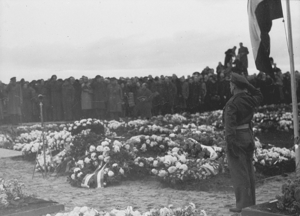 Herdenkingen en begrafenissen van gevallenen. U.S. General pays tribute to American dead in Holland.