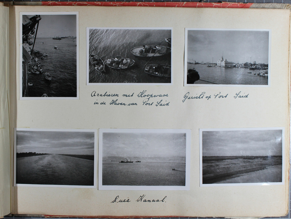 Pagina uit het amateur fotoalbum “Indië 16 October 1946 t/m 28 December 1949” van soldaat I.N.J. Janssen. Het album toont het vertrek uit Nederland en de reis naar Indonesië. Aankomst in Tandjong Priok op 12 november 1946. Janssen verblijft vernamelijk in Andir, West-Java, en later in Medan, Noord-Sumatra. De foto’s tonen vooral het dagelijks leven, de plaatselijke bevolking en het landschap.