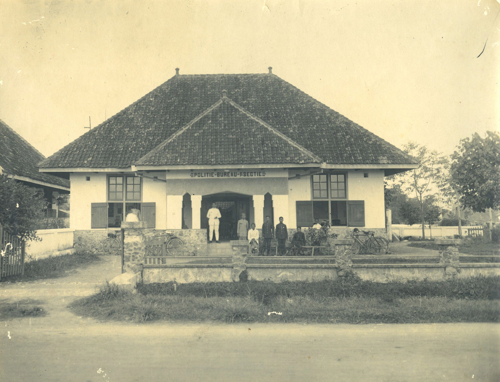 Politie commissariaat 3e sectie. Het politieapparaat in de archipel. Foto uit de collectie van het Hoofd van de Dienst der Algemene Politie in Nederlands-Indië, de heer H.F.C. Tieleman. De collectie omvat foto's van de jaren 1930 tot 1938 betreffende kazernes en politieposten verspreid over heel Nederlands-Indië, alsmede van exercities van de politie op verschillend gebied.