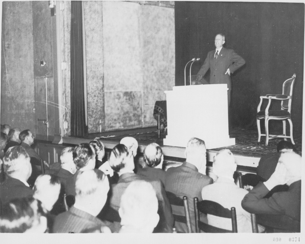 ' Den Haag, 19 Juni 1940. Overdracht van het SS-Totenkopf Bataljon aan den Rijkscommissaris op het Binnenhof. Dr. Seyss-Inquart tijdens zijn toespraak na afloop van de inspectie van het Bataljon. '