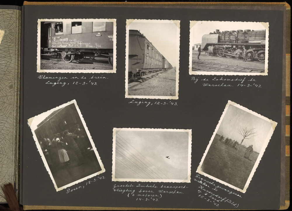 Pagina uit het fotoalbum van J.C. Beekhof. Beekhof wordt voor de oorlog lid van de NSB en maakt later deel uit van de Mussertgarde. Als lid van de WA volgt hij een opleiding in België aan de Motorschool en vertrekt naar Duitsland. Uiteindelijk komt Beekhof aan het Oostfront in de Sovjet Unie terecht, tot en met maart 1943. Af en toe is hij terug in België en Nederland. In april 1943 gaat hij met verlof in Nederland. Hier eindigt het album. Koblenz 20-6-'41 Omgeving Besigheim 23-6-'41. Bingerbruck 21-6-'41. Vertrek uit Stuttgart. 28-6-'41.