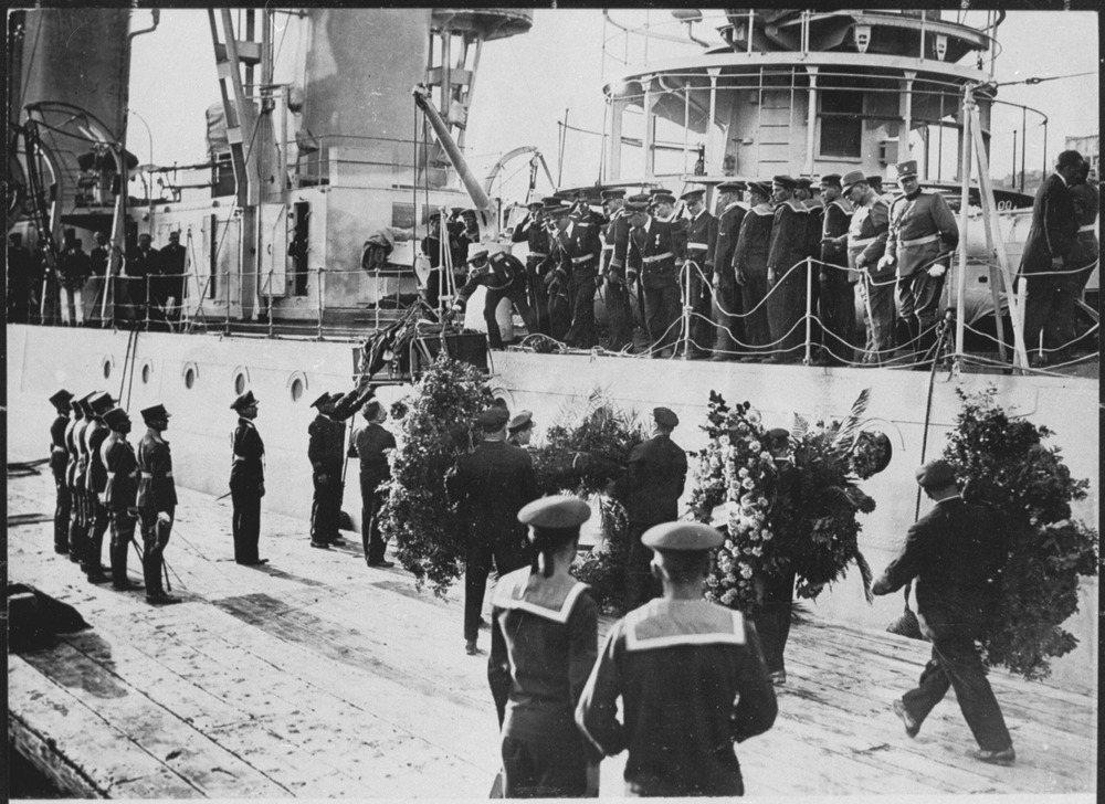 Thousands of motor-tyres for the Italian offensive. Mountainsof motor-tyres on the quay at Massawa.