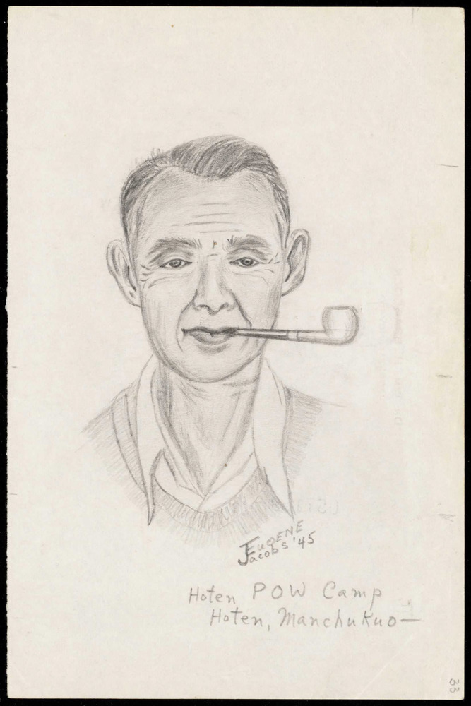 7. `We're on the edge of a Volcano'; `Major G.A.L. Rodwell. R.A. 135 Field Regt.' Deze tekening maakt deel uit van verzameling van 22 tekeningen, drukwerk en gedichten van Engelse/Nederlandse origine betreffende diverse kampen, en de Birma-Siam-spoorweg.; De tekeningen hebben een eigen nummering.