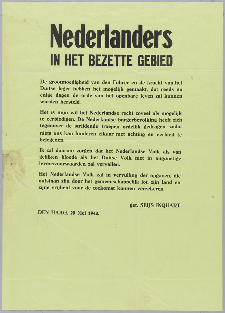 'Nederlanders in het bezette gebied'. Mededeling van Seyss-Inquart.