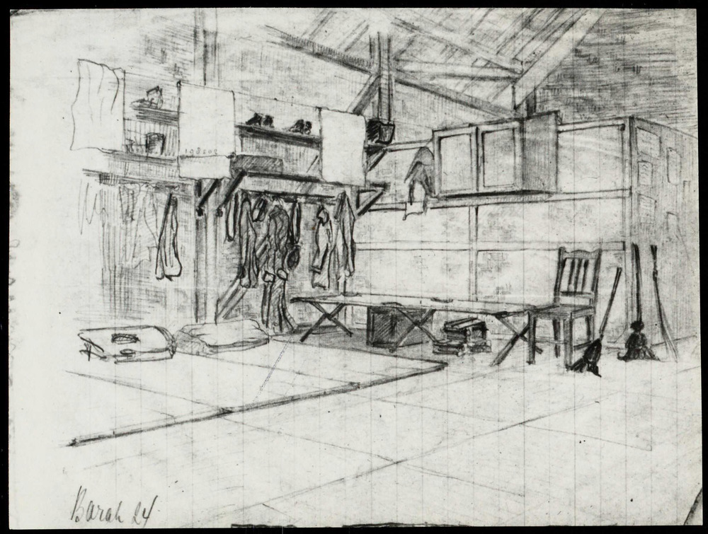 `Barak IV kamp Rochdale 'in vogelvlucht' Alkmaar 24-3-46 G.H. Mazeneer'