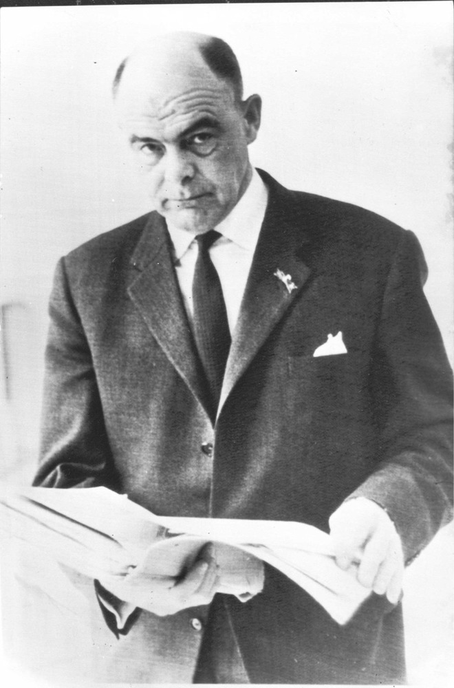 Nederlandse getuige in Auschwitzproces. De Nederlandse getuige Anton van Velsen bekijkt nog even zijn stukken voor hij gehoord wordt in het Auschwitzproces in Frankfort.