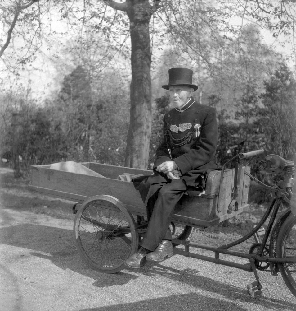 Oosterbegraafplaats. Deze foto maakt onderdeel uit van de collectie van Emmy Andriesse (1914-1953), een van de meest gerenommeerde fotografen van Nederland. Na afronding van haar studie verhuisde zij naar Amsterdam, waar ze ging werken als fotograaf. Andriesse leverde veel foto's aan kranten en tijdschriften die zich kenmerkten door het gebruik van verrassende camerastandpunten en voorliefde voor diagonale beeldopbouw. De onderwerpen waren ambachten, landschappen en het leven van volwassenen en kinderen in steden en dorpen. Dit kon zij doen tot het zogenaamde ‘Journalistenbesluit’ van de Duitse bezetter in 1941. Als Jodin kon zij niet werken of publiceren en moest onderduiken. Eind 1944 regelde de bevriende antropoloog Arie de Froe een vervalste ariërverklaring voor haar en kon zij weer aan het publieke leven deelnemen. Ze sloot zich aan bij het illegale fotografencollectief ‘De Ondergedoken Camera’. De foto's die Andriesse onder moeilijke omstandigheden maakte van de Hongerwinter in Amsterdam, behoren tot de meest indringende uit haar oeuvre.