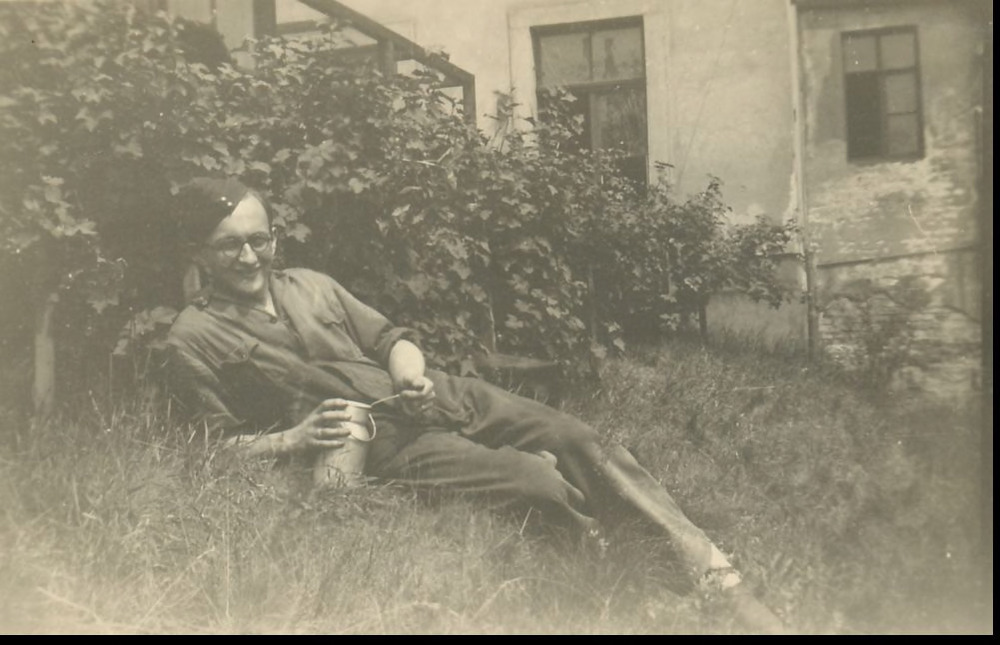 De fabriek waar Vogel werkte. Twee fotoalbums, veel losse foto’s, briefkaarten en negatieven van J.A. Vogel, 1921, over zijn te werk stelling in Dresden. Zijn beroep was plaatwerker. Hij komt op 28 april 1943 aan in Dresden. Bijgevoegd is zijn paspoort. Daaruit blijkt dat hij verlof kreeg van eind januari 1944 tot 8 februari. Het eerste album bevat foto’s uit 1943 en 1944 van Vogel en andere Nederlanders? in Dresden Zij werkten in een fabriek van Willy Schotz in de Marienhofstrasse 75/ 77.. Tussen door kleine, gekochte foto’s van Dresden en wat briefkaarten. Een bladzij bevat drie foto’s gemaakt tijdens zijn verlof in Nederland. De laatste met twee koffers, klaar voor zijn terugreis baar Dresden. . Tweede album begint in februari 1944. Voorin staat: Gekregen voor onze verjaardag van Piet Stijnen, 27-2-1944, Dresden. Het is vergelijkbaar met het eerste album, hierin ook foto’s die al in het eerste album zitten. Maar ook foto’s van uitstapjes naar de sneeuw en bergen in de buurt. Albums zijn interessant omdat alle foto’s het Dresden vertonen van voor het bombardement op 13/ 14 februari 1945. Of Vogel dit heeft meegemaakt is onduidelijk. Een stempel van 21 maart 1945 toont dat hij tot maart 1947 in Dresden mocht blijven!!