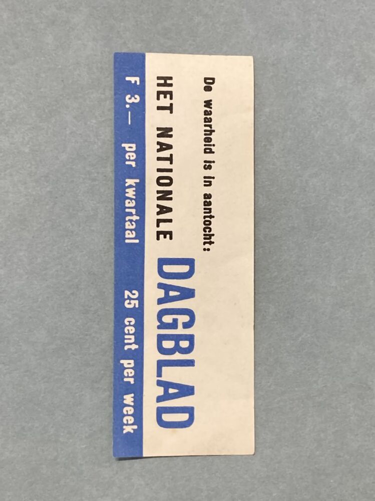 Sluitzegels mbt. propaganda NSB-pers, tekst: Het Nationale Dagblad. De ...