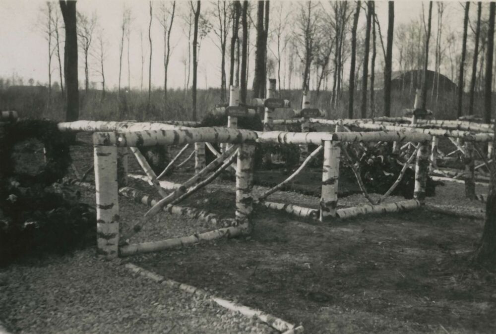 Duitse militaire graven. Rasterwerk van berkenbomen. Jaar en plaats onbekend.
