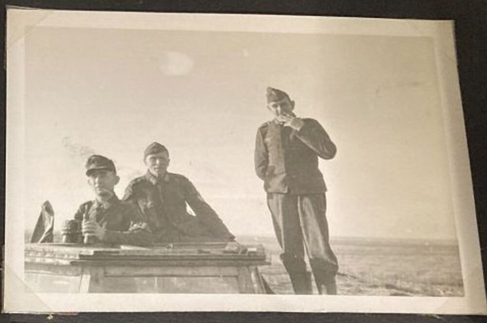 Foto ingeplakt in fotoalbum, Duitse Luftwaffe soldaten tijdens de bezetting.