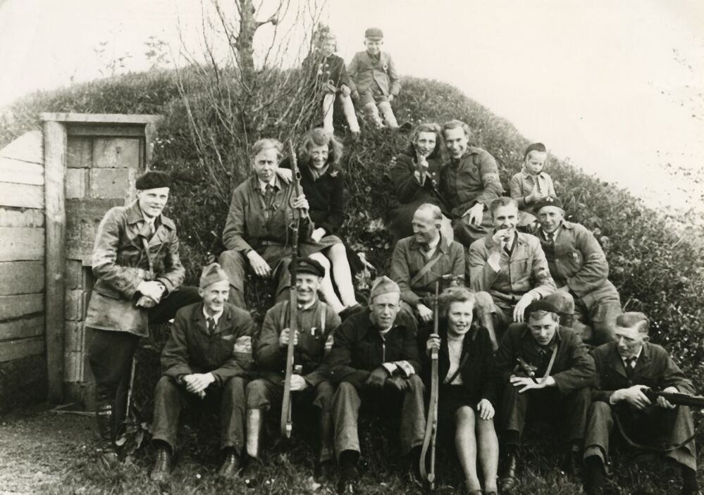Tijdens de bezetting waren er vele organisaties actief die het Duitse gezag op allerlei manieren probeerde te ondermijnen. Dat waren de Ordedienst (O.D.), Landelijke Knokploegen (L.K.P.) en de Raad van Verzet (R.V.V.). Op 5 september 1944 werd de Binnenlandse Strijdkrachten (B.S.) officieel opgezet. De voortzetting van de tot dan toe weinig samenwerkende verzetsgroepen speelde een belangrijke rol tijdens de bevrijding van Nederland. Hier poseert direct na de bevrijding een afdeling van de B.S. voor de fotograaf. Op de voorste rij zit tweede van rechts Lou van Vliet.