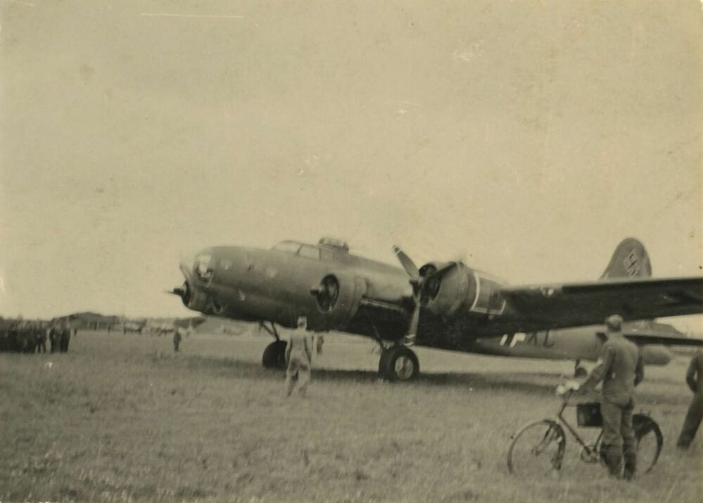 Een buitgemaakte Amerikaanse bommenwerper van het type B-17 bezocht in de zomer van 1943 de 'Fliegerhorst Leeuwarden'. De machine droeg de naam 'Wulf Hound' en was ingedeeld bij de Duitse eenheid 'Rosarius Circus'. Zij vlogen met buitgemaakte vliegtuigen en tijdens het bezoek aan de basis konden de Duitsers deze formidabele tegenstander eens rustig van alle kanten bekijken. De bommenwerper was na een noodlanding in Noord-Frankrijk licht beschadigd in Duitse handen gevallen en daarna van een nieuwe code voorzien.