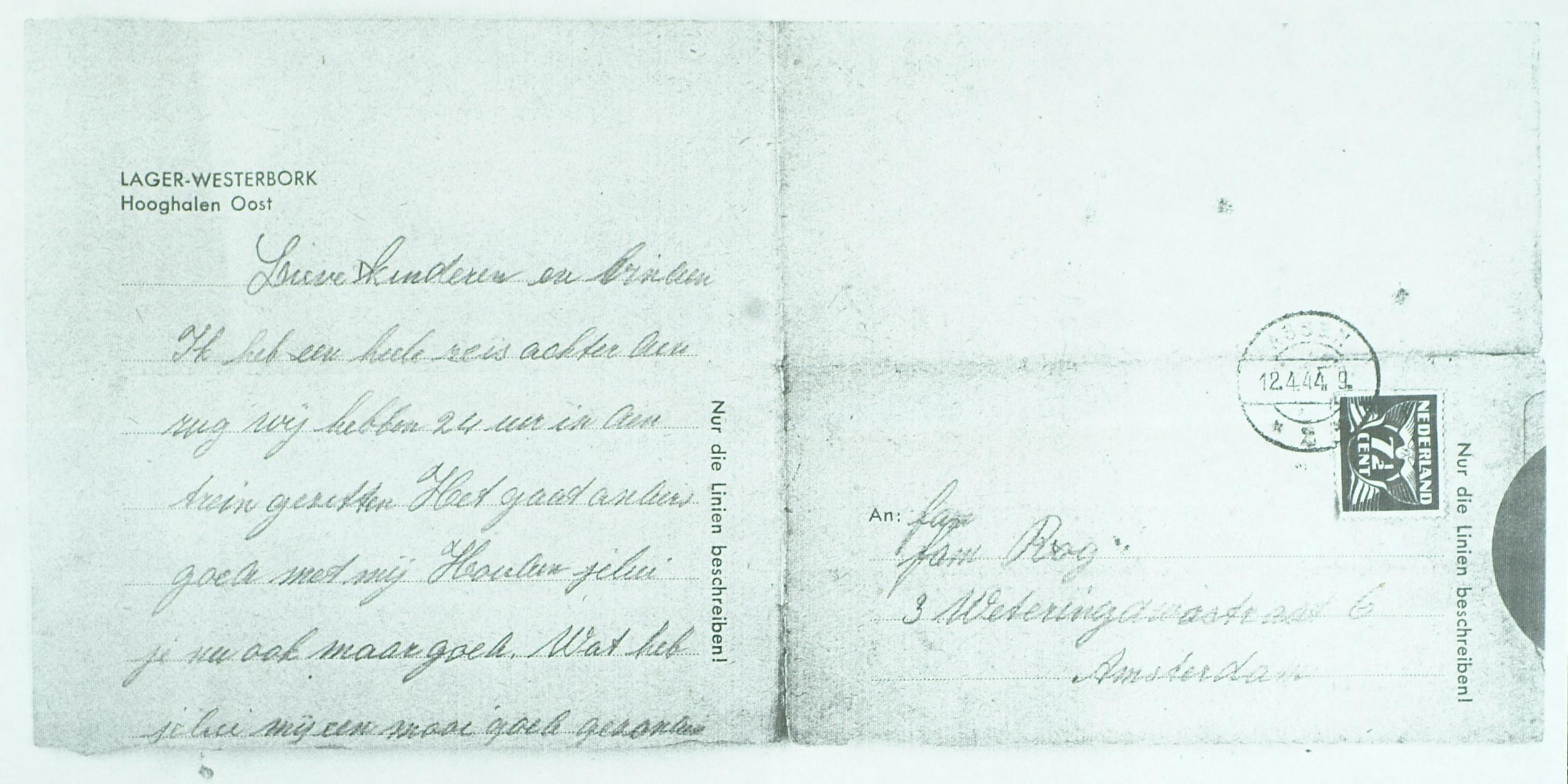 Brief van Sophia Rog-Crost aan de familie Rog vanuit kamp Westerbork