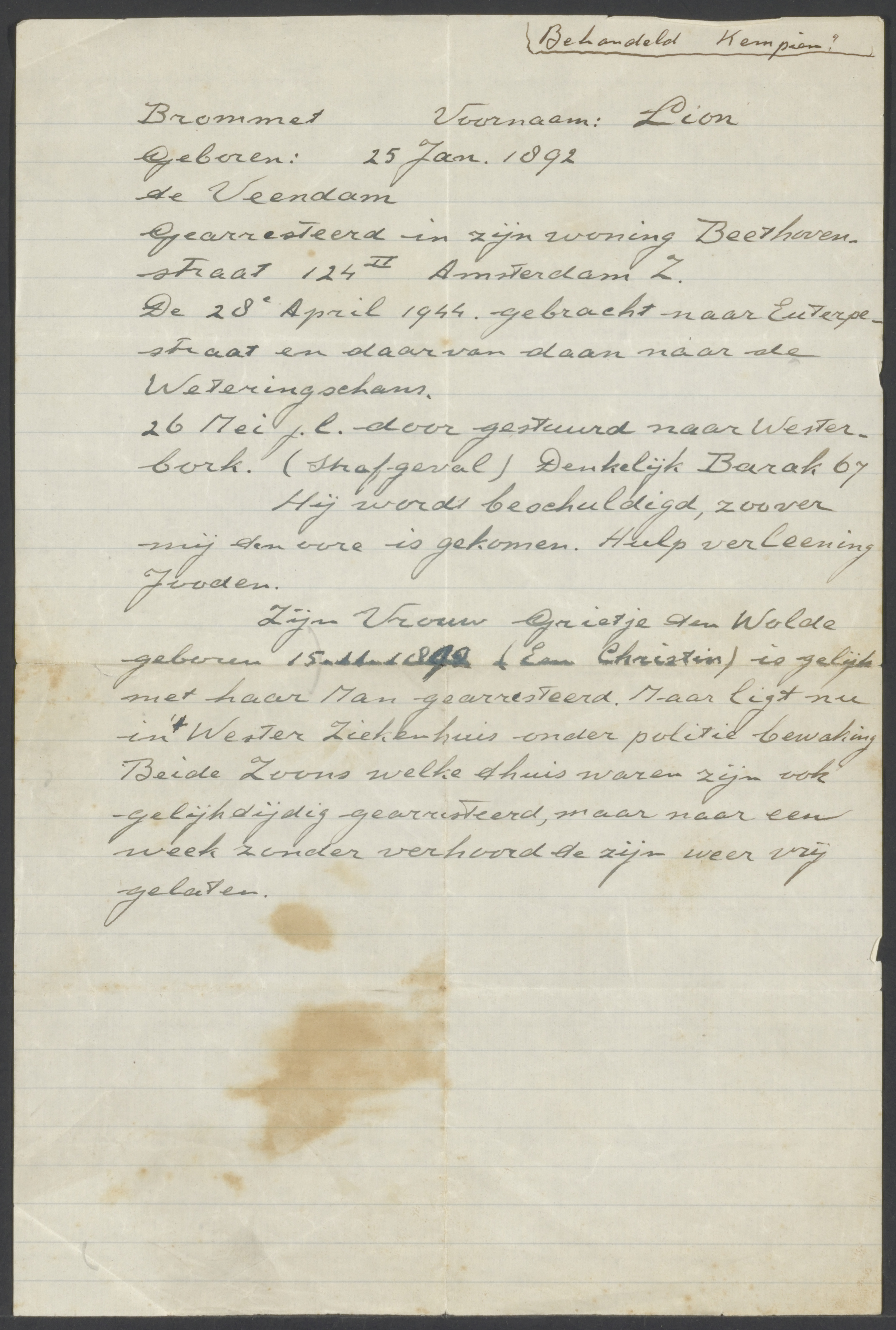 Toelichtingen met betrekking tot de arrestatie door de marechaussee van Aad van As in kamp Westerbork; werking van de distributie, omgang met geldige bonnen.