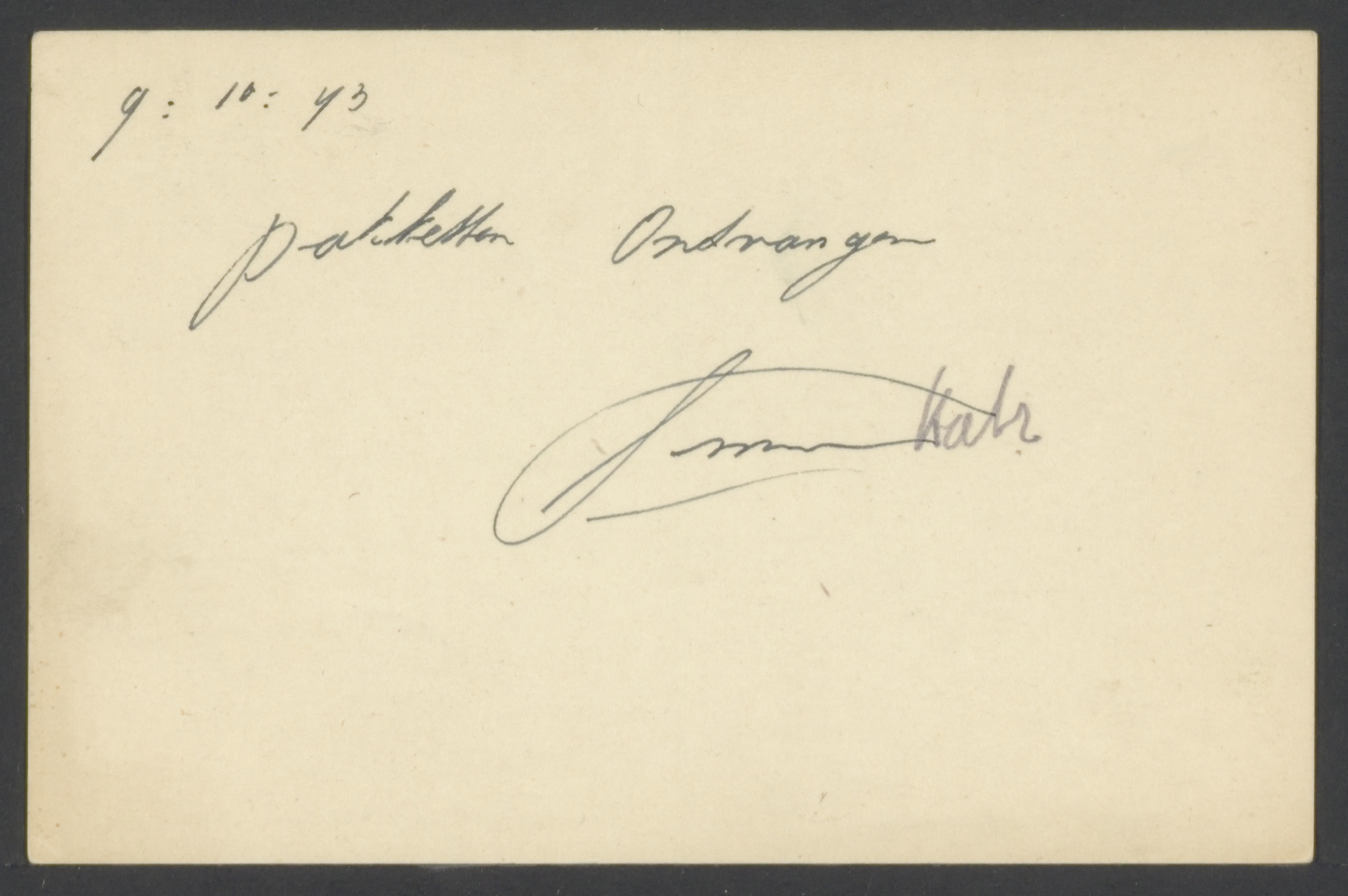 Van: Levie-Katz, J/Joseph Levie Aan: Lackrooy, Fam. Plaats: Westerbork, kamp, barak 60 Datum: 1943-11-16 Onderwerp: pakketten ontvangen, hartelijk dank.
