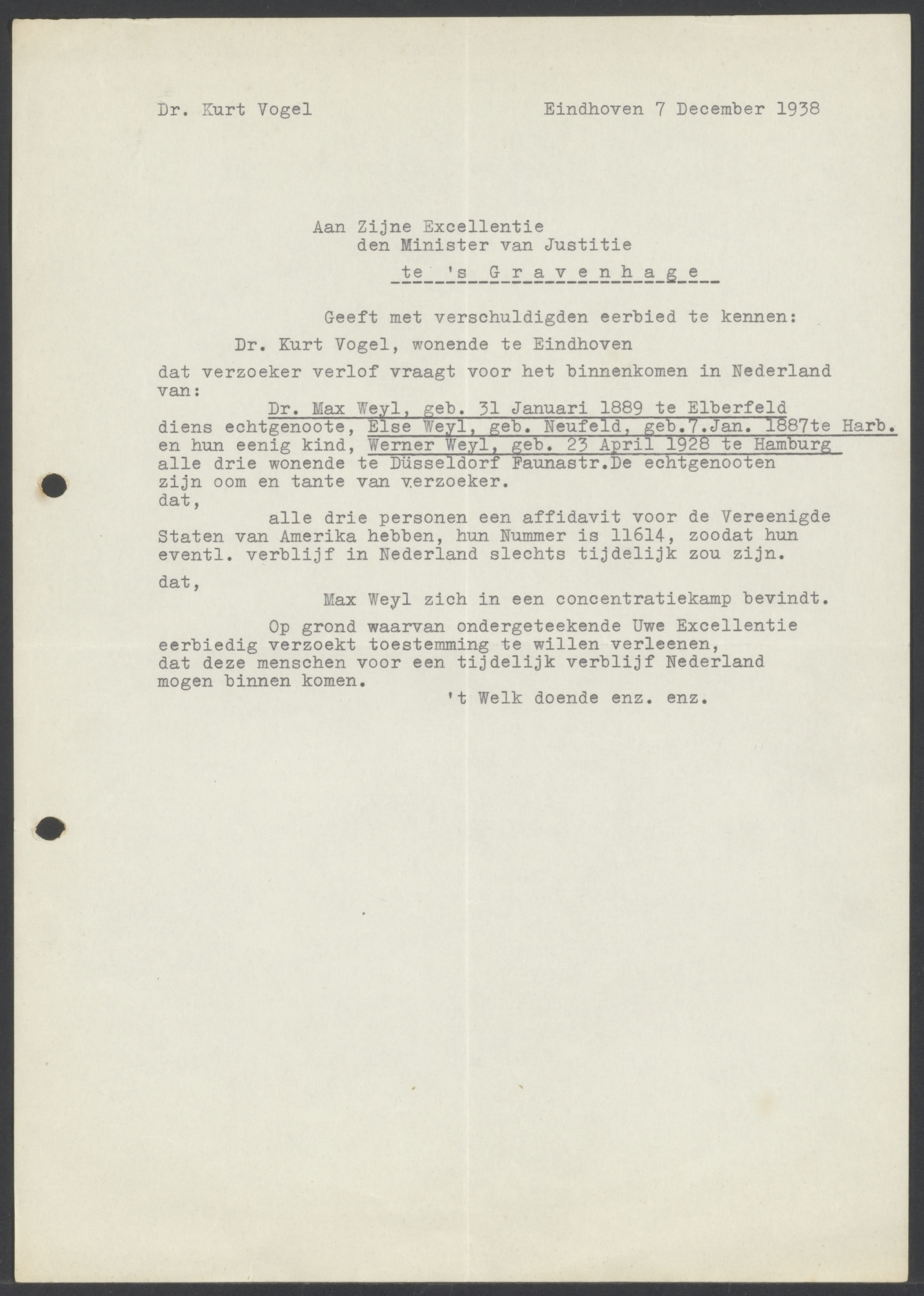 Van: van Boeyen, Minister Aan: Minister van Justitie Plaats: Den Haag Datum: 1939-10-26 Onderwerp: Oprichting Vluchtelingenkamp, aantallen vluchtelingen, bewegingsvrijheid van de vluchtelingen; bewaking.