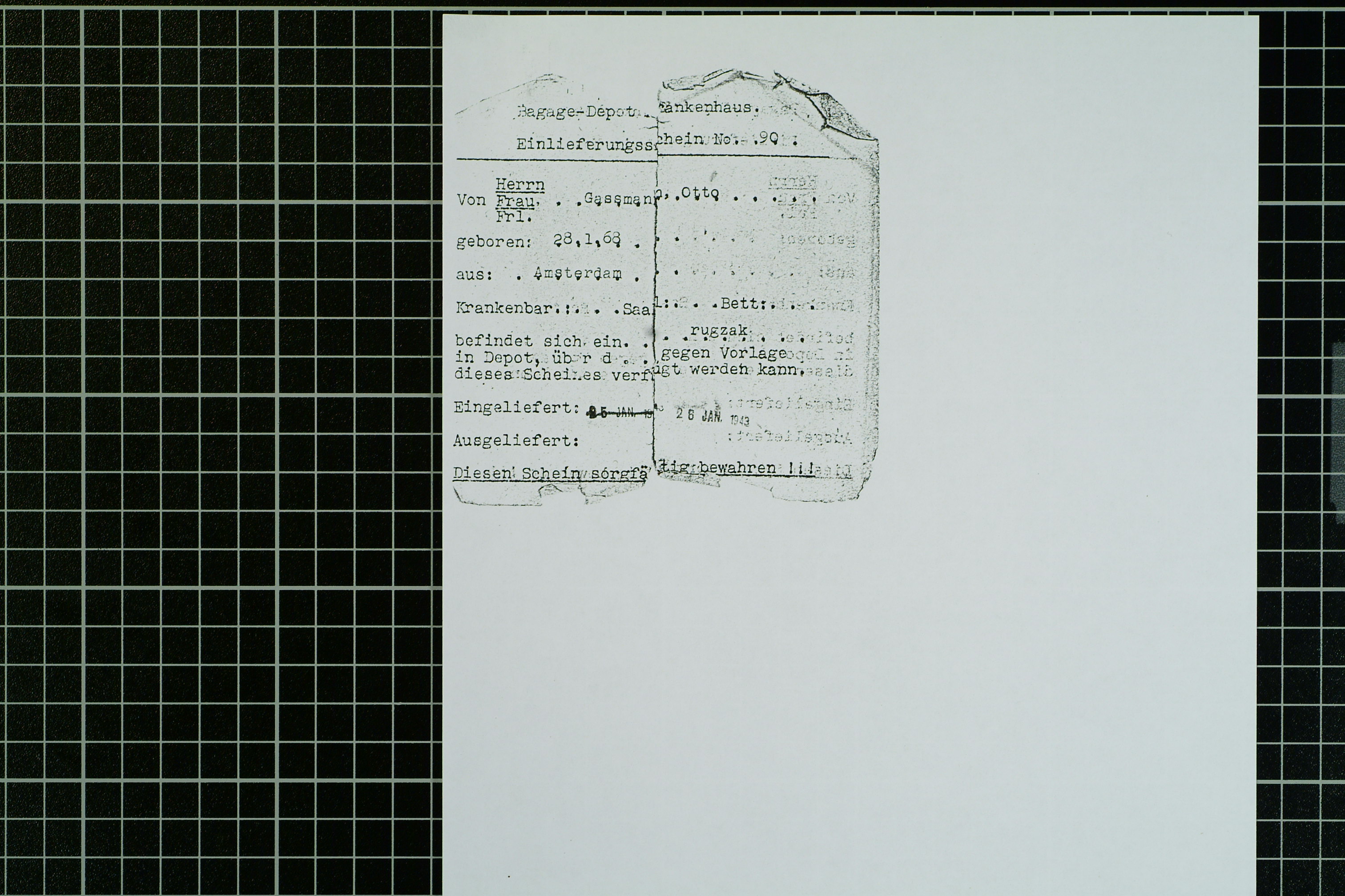 Onderwerp: een bewijs dat wordt gebruikt bij het inleveren van bagage bij opname in het ziekenhuis. De bagage wordt zolang de patiënt in het ziekenhuis ligt in een depot van het ziekenhuis opgeslagen.