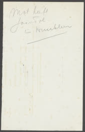 - 0 1940-07-07 372663 76 AVRO-RA Arrangement D/031-M/0425 Hortensia Ja LEUR, JOOP DE |f [componist] NL-HvsSOM_SOMWOII_0-K3-P2-40 Tol, Jacques van WOII briefje met leden van het omroeporkest, met de mededeling 'Mat heeft Jac v Tol in bruikleen' - dus nooit retour nn