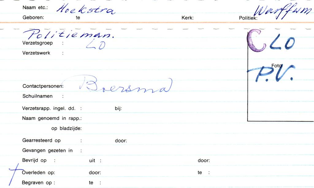Systeemkaarten met namen van personen uit het verzet: Dirk Boonstra