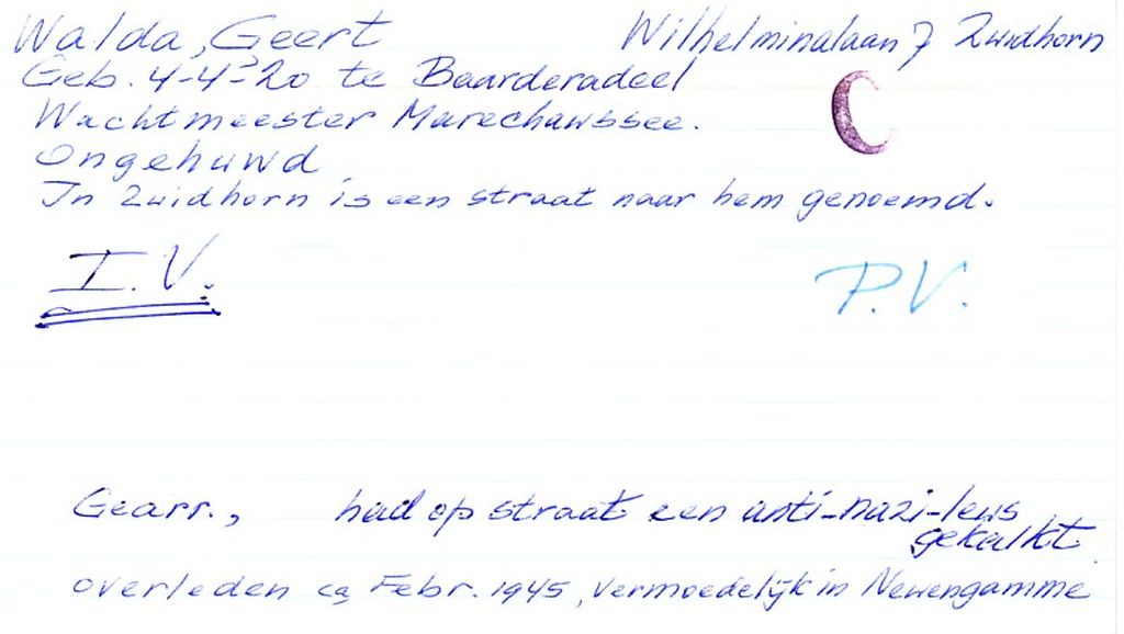 Systeemkaarten met namen van personen uit het verzet: Geert Groenewold