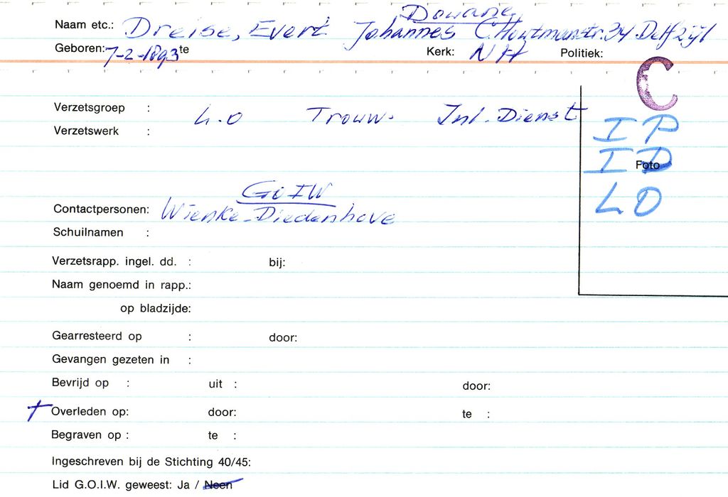 Systeemkaarten met namen van personen uit het verzet: Johannes Mosterd