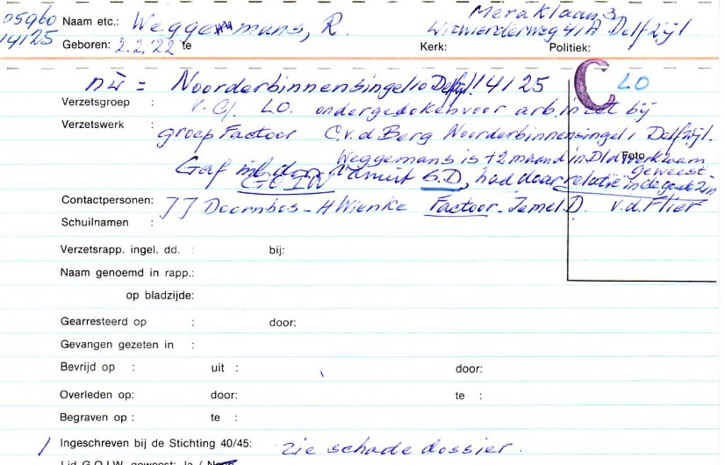 Systeemkaarten met namen van personen uit het verzet: Klaas Roelof Woltjer