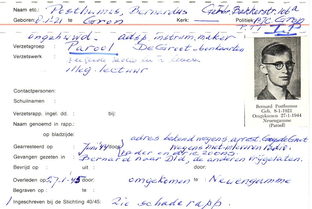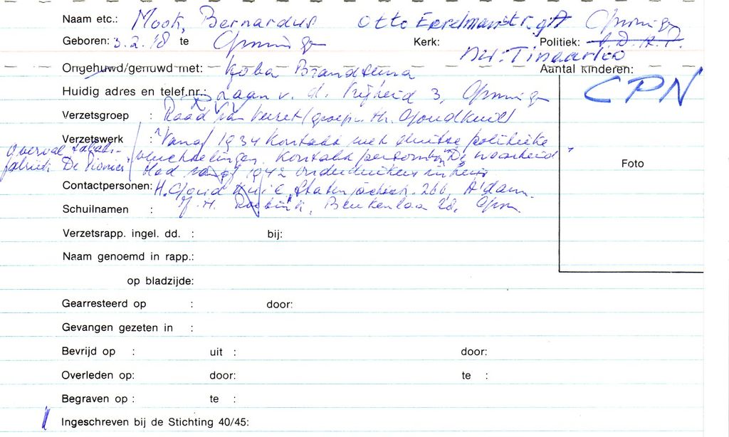 Systeemkaarten met namen van personen uit het verzet: Bernardus Mook