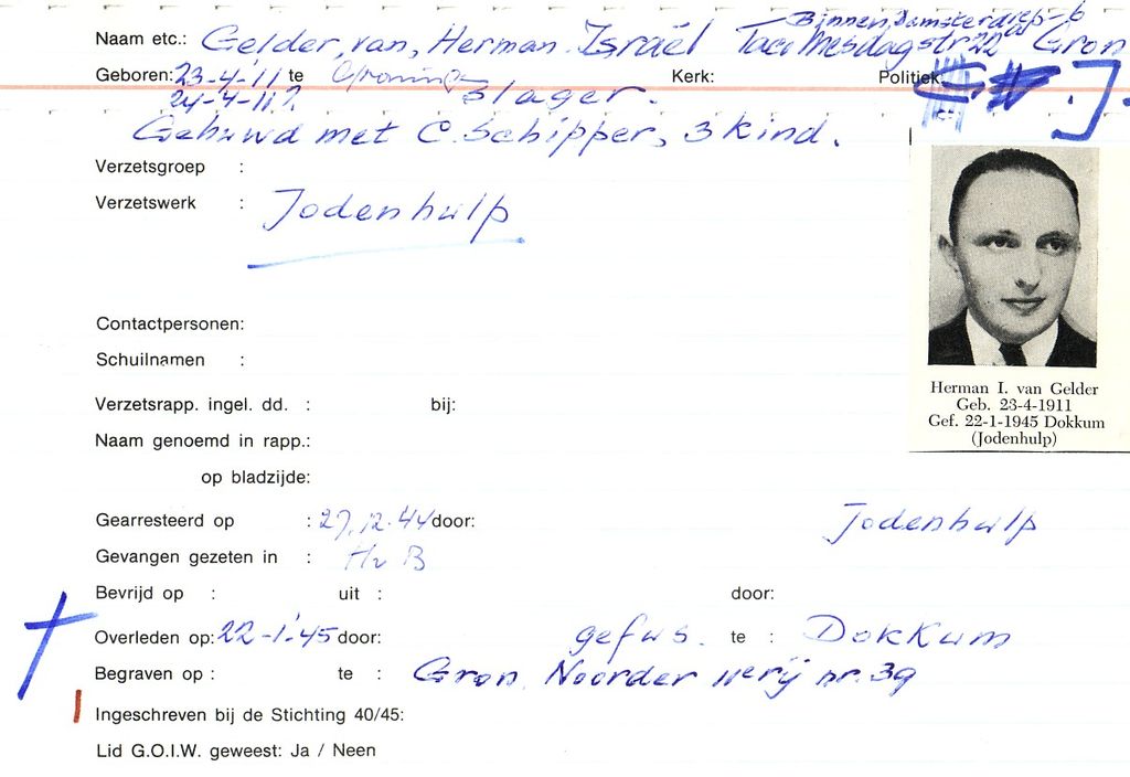 Systeemkaarten met namen van personen uit het verzet: Herman Israel van Gelder
