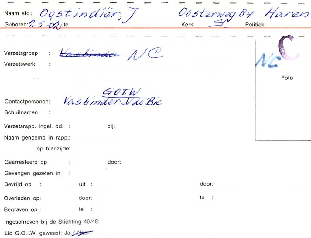 Identificatienummer van Oorlogs- en Verzetscentrum Groningen (OVCG)
