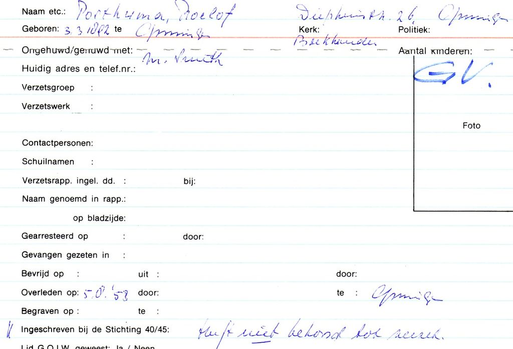 Systeemkaarten met namen van personen uit het verzet: Roelof Vegt