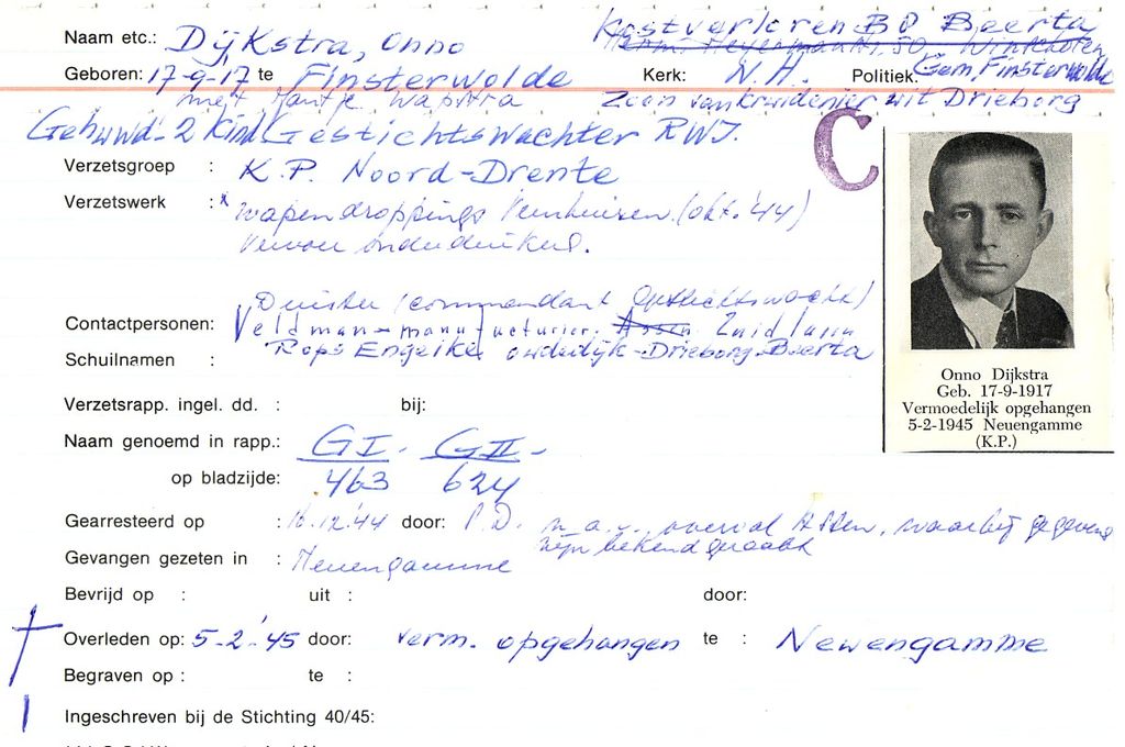 Systeemkaarten met namen van personen uit het verzet: Klaas Dijkstra