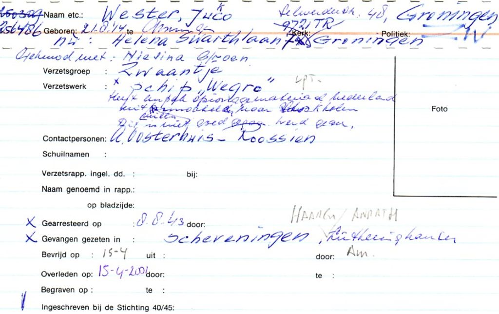 Systeemkaarten met namen van personen uit het verzet: Juko Boer