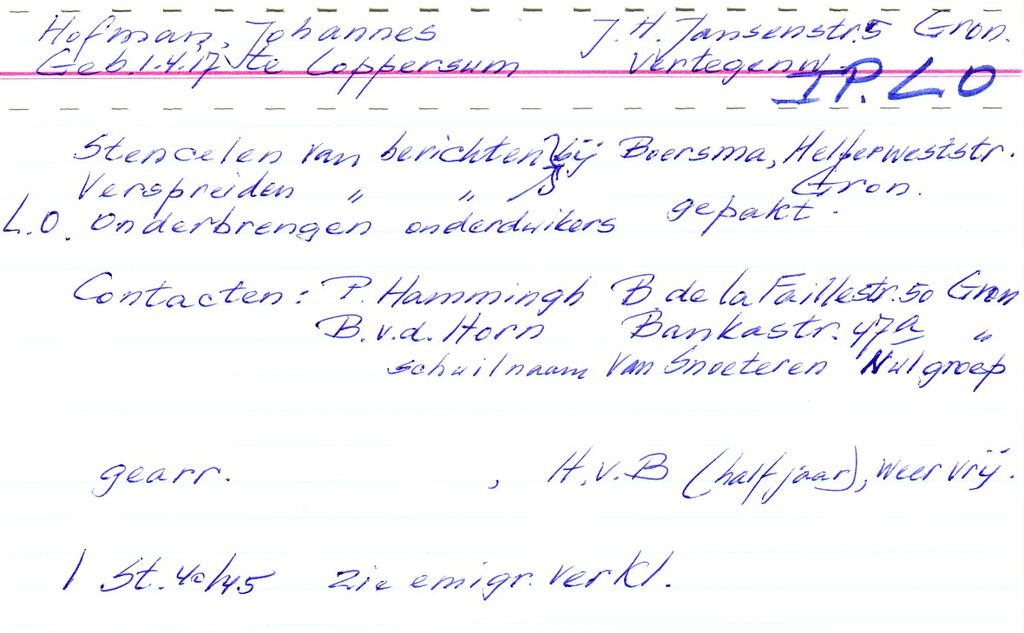 Systeemkaarten met namen van personen uit het verzet: Johannes Wardenaar