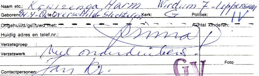 Systeemkaarten met namen van personen uit het verzet: Harm Mulder
