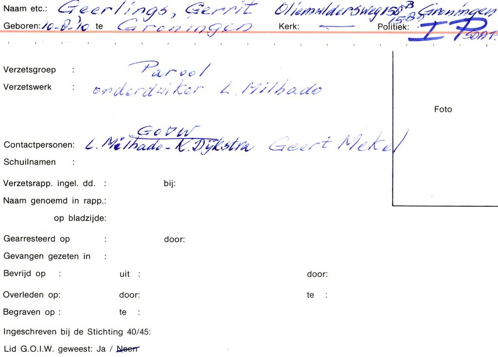 Systeemkaarten met namen van personen uit het verzet: Gerrit Buwalda