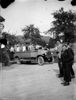 Gezicht op de Bierkaaistraat te Hulst met rechts een uithangbord: Bato Rijwiel Huis. Op de achtergrond de St. Willibrorduskerk