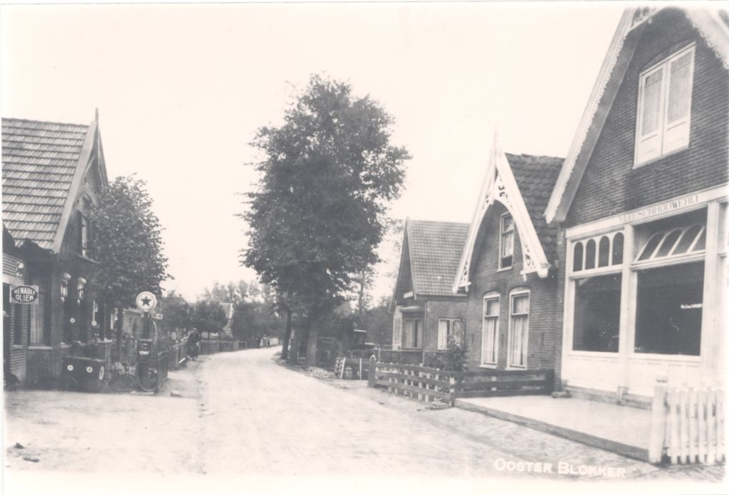 Oosterblokker omstreeks 1910. Rechts achter- en zijgevel oude raadhuisje van Blokker.