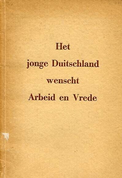 Een boek met op het titelblad: "Het jonge Duitschland wenscht Arbeid en Vrede.