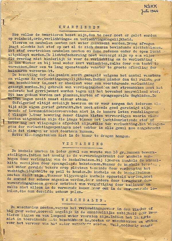 Het Nationalsozialistische Kraftfahrkorps (N.S.K.K.) gaf in juli 1944 een zesbladig getypt gezondheidsreglement uit. Beschreven wordt onder andere hoe luizen bestreden moeten worden. In het reglement staan tekeningen en vijf zwartwit foto's.