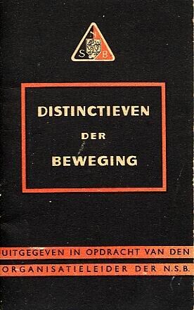Twee exemplaren van ''Distinctieven der Beweging'', een geïllustreerd zakboekje van de N.S.B. Het zakboek biedt een overzicht van alle draagtekens van de N.S.B., W.A., Nederlandse S.S. en Jeugdstorm en bevat het reglement "Houding, Uniform, Vormen en Eerbewijs”. Op de voorzijde wordt de titel en het logo van de N.S.B. getoond. Het zakboek bevat 33 pagina's.