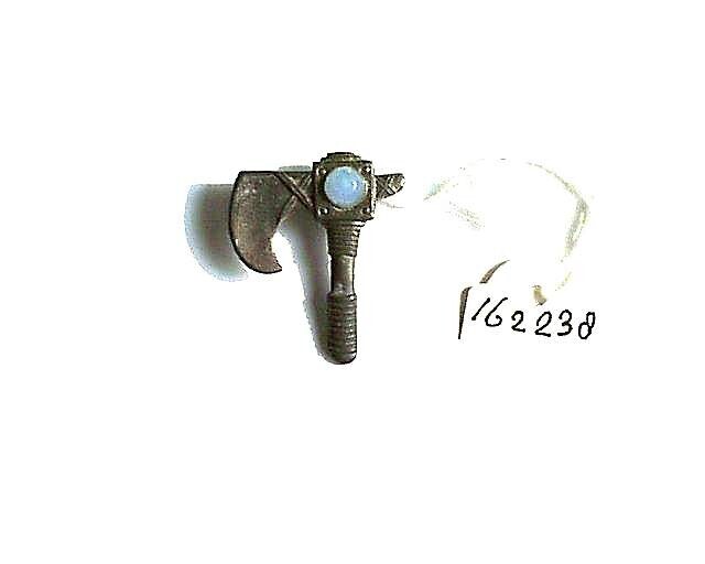 Een zinken speldje uit een serie van acht historische Duitse strijdbijlen uitgegeven bij de collecte van het Winterhilfswerk tussen 19 en 20 oktober 1940. Elke strijdbijl vertegenwoordigde een verschillende Duitse regio en draagt een rond bol halfedelsteentje, vaak afkomstig van dezelfde regio. In dit geval een blauw steentje. Op de achterkant: "H1".