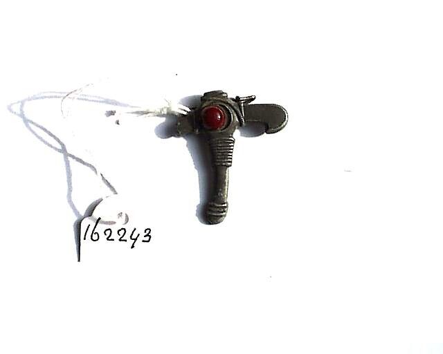 Een zinken speldje uit een serie van acht historische Duitse strijdbijlen uitgegeven bij de collecte van het Winterhilfswerk tussen 19 en 20 oktober 1940. Elke strijdbijl vertegenwoordigde een verschillende Duitse regio en draagt een rond bol halfedelsteentje, vaak afkomstig van dezelfde regio. In dit geval een rood steentje.