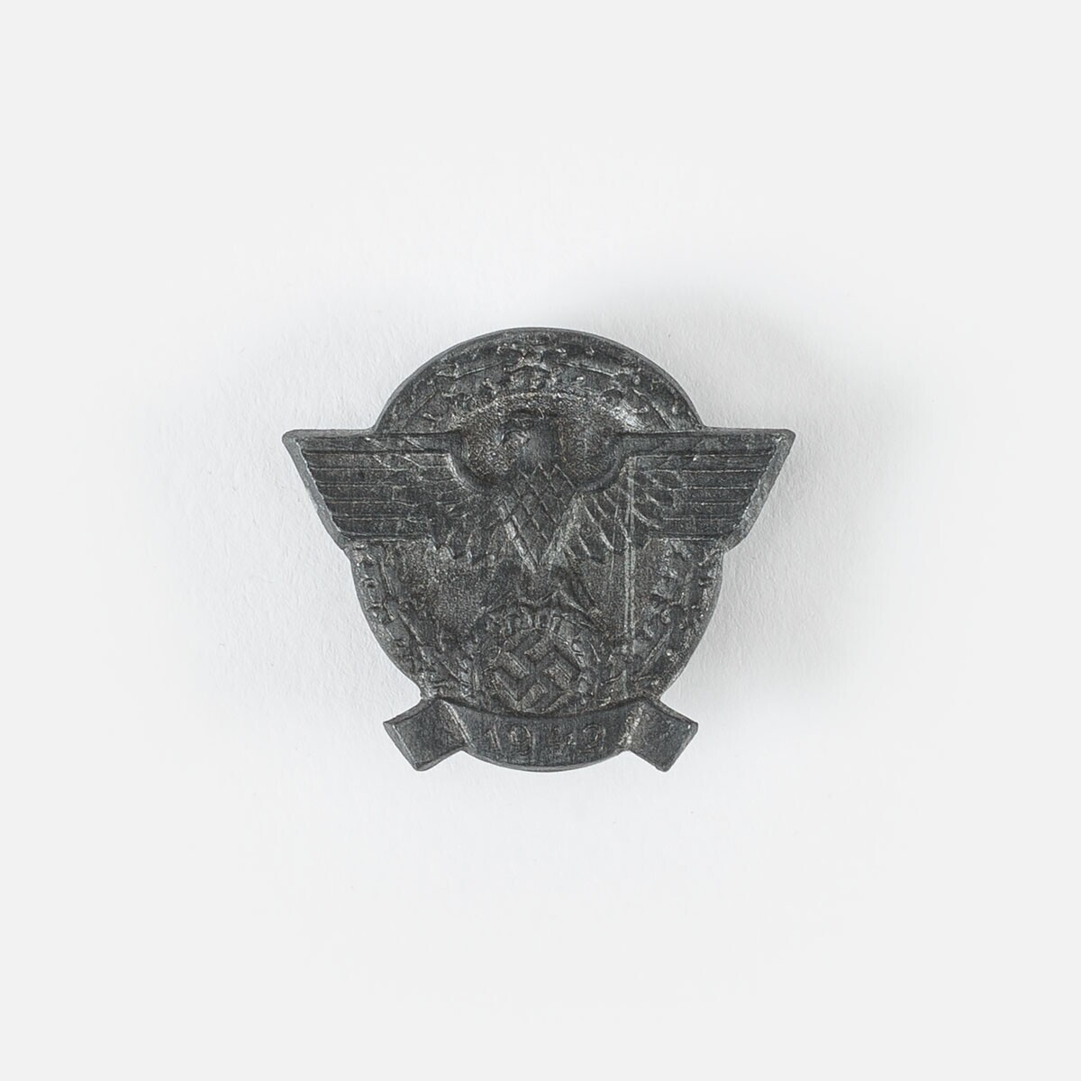 Een zilverkleurige metalen speldje met de afbeelding van de Duitse rijksadelaar met in de klauwen het hakenkruis. Het geheel omgeven door een krans van eikenbladeren, waarbij de gestrekte vleugels van de adelaar iets uitsteken. Onderaan: "1942". Het speldje werd uitgereikt aan bezoekers van de open dag van de kazernes van de Wehrmacht in 1942. Het was een dag waarop fondsen werden geworven voor de Duitse politie.