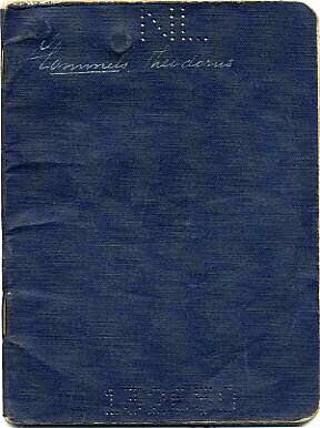 Nederlands paspoort, gedrukt in 1941 en afgegeven op 3 februari 1943 te Nijmegen aan Theodorus Hommels. Het bevat stempels met verblijfsvergunningen voor Lutherstadt, Wittenberg en Freiburg.